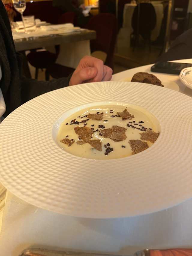 8.5/10The food, a Caesar salad (one of the best I ever had) and risotto Milanese were good. Despite a reservation I made online 45 min in advance, the manager didn’t seem keen to place me as I was alone. When he heard I made a reservation he did give me a table, which wasn’t a great one as the waiters rushed by all the time. The others waiters were very kind and also the manager warmed up in the end. Atmosphere was very nice, try to sit outside / on the covered terrace!