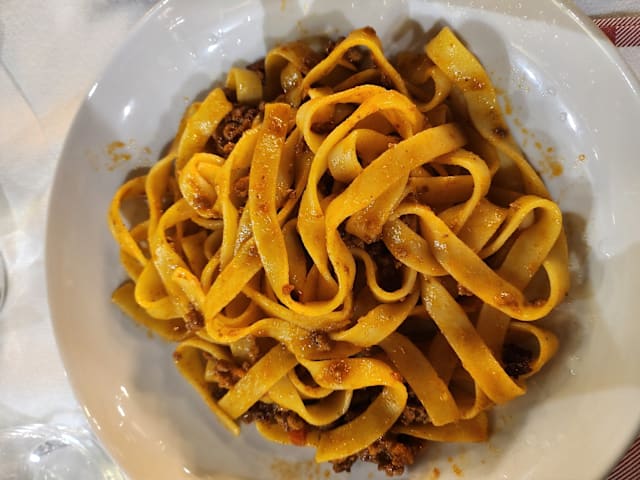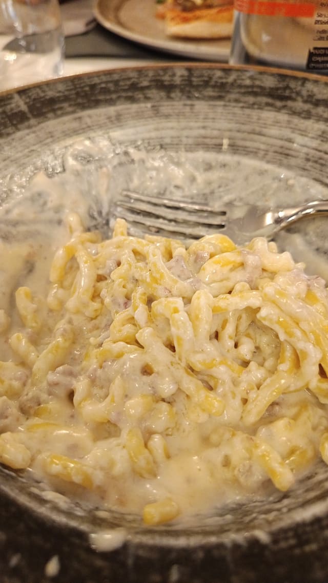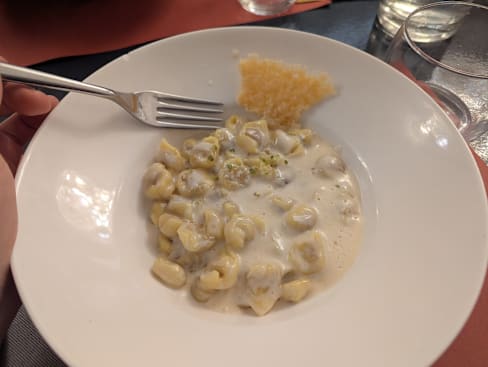 7.5/10We ordered three different pasta dishes as our main meal and all were good but not particularly memorable. (Note: We didn’t order any pizzas, which looked quite good and seemed to be a speciality of the restaurant.). Service was efficient and amiable. In short, a solid option for dinner in the center of Bologna.