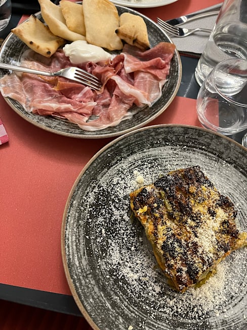 8.5/10Food was insanely good. Probably the best laaagna I’ve ever had, house red was lovely, had burrata and Parma with the little fried bread to start. All the food came at once (super fast!) together, so it was a lot at once but still so delicious. Service was pretty good, they were fairly busy. Ambiance was just ok, we had a reservation well in advance so it was a little disappointing to arrive and be told there was only room to sit inside on a beautiful evening. The food outweighed everything though, can’t believe it was all gluten free. Finished with tiramisu, also amazing but portions were extremely generous and was so full by that point!