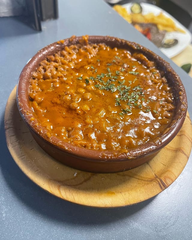 - Gamba/calamares. verduras salteadas, queso, salsa taco