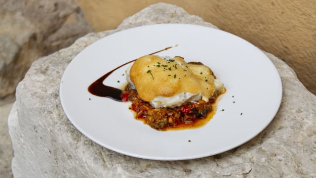 - Suprema de bacalao con salsa de cava oriol rosell, alcachofa y papada ibérica de bellota