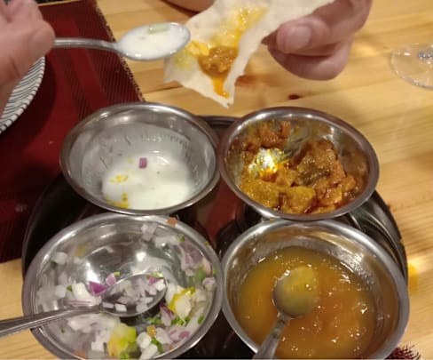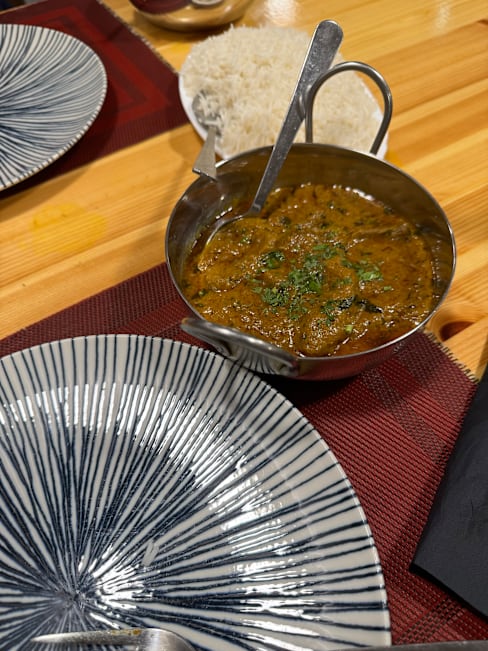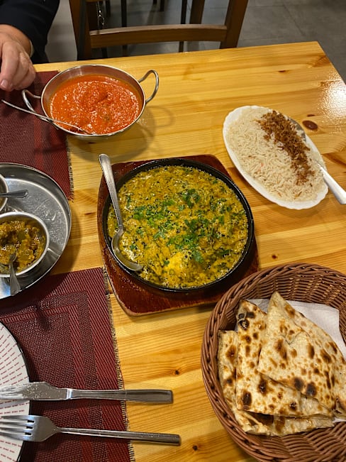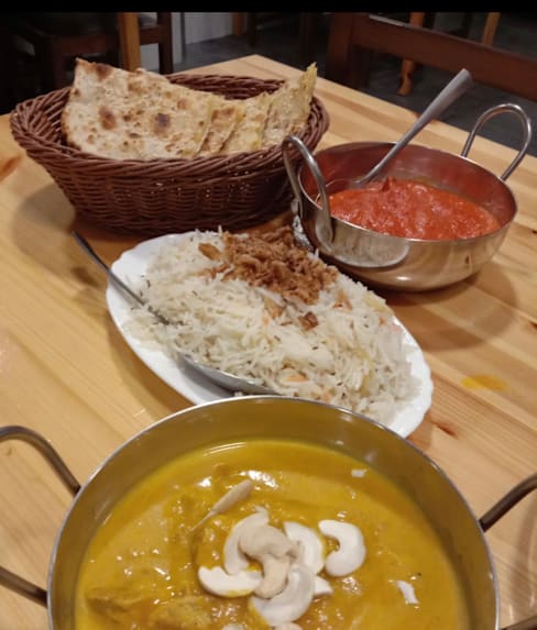 10/10The best curry I had in Barcelona in 5 years. We came here for diner and we found the atmosphere here amazing. Great cozy lighting what not all curry places here have. We started with papadums that were big not to thick what I think is perfect. It came with 4 condiments and included mint yoghurt. We ordered the Masala and the makhani chicken with pilau rice and a Perswani naan. It was al perfect. A great amount of perfectly cooked chicken, lovely sweet makhani and super flavoured rice ( trust me it’s exspecially nice). The naan was amazing too. Lots of sweet and covered in sesame seeds. The Verdejo wine was perfect to wash it al down with and hood priced. A special thanks to our waiter Hussain who helped us decide our dishes to our taste and who was spot on. He is a asset to this restaurant Ofcourse next to the person preparing the amazing dishes. Highly recommended place. We wil be back for sure