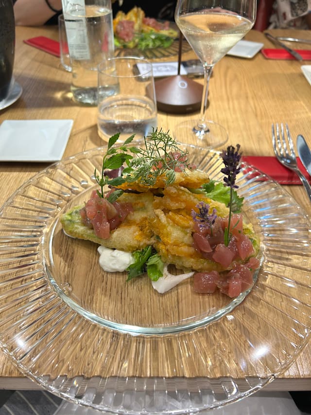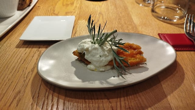 9/10Food was excellent and novel. Good choice and variety. Creative. Expansive wine choice so we ordered house wine by the glass. Very good. Usually it is. The chef won’t pick bad wine. Service could have been better. The first dish arrived before the wine. Separately, I think we had a trainee. The inside looked nice but we are outside which is kind of odd alleyway. There was a rude American brat 3 tables away talking to her mommy on FaceTime at full volume. The restaurant should have let her know that was not acceptable. But I would go back and eat inside next time.