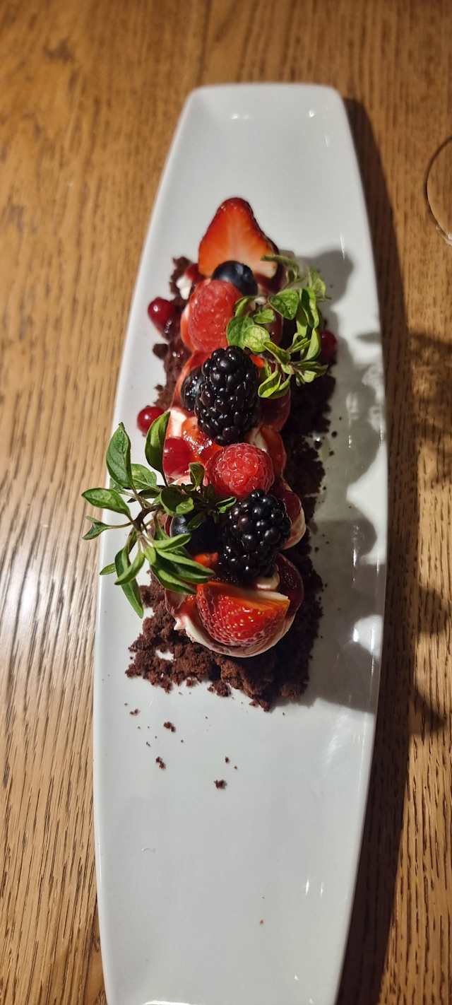 - Salmone marinato con mango, finocchi, mandarino, valeriana e yogurt greco