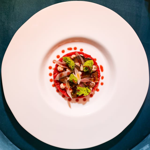 Tartare di fassona piemontese con pomodorini confit, mandorle e salsa bernese