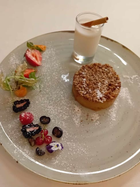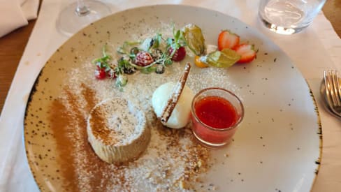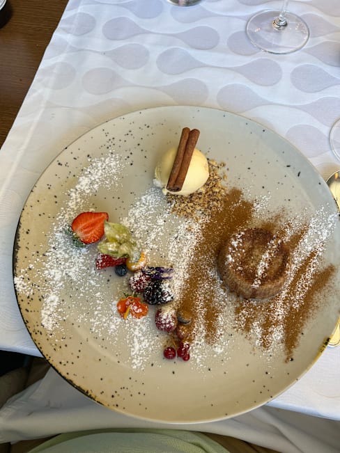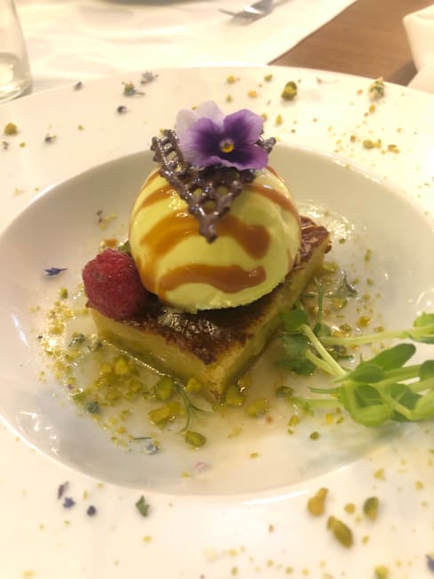 9/10Delicious food with a sophisticated flair...very generous portion size. Large menu offerings. Service was kind but uneven in plates being delivered at the same time. Innovative and tasty desserts.