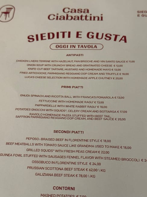 10/10Everything tasted great, very helpful service. The Restaurant is visited by many locals, which makes it clear that casa ciabattini is a place you should check out, if you want to taste authentic tuscan cuisine.