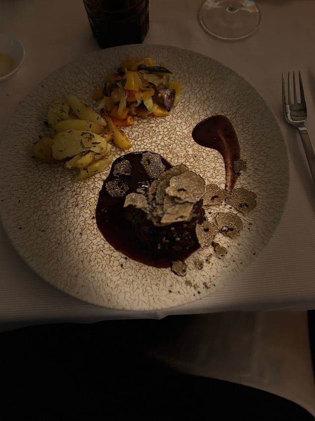 10/10What a wonderful evening at an exceptional restaurant. I had requested a romantic table and we were seated at a solo table in their beautiful wine cellar. Every course was exquisite and service was flawless. Our Brunello was fabulous and only 30€. The total bill was incredibly inexpensive, only 102€ for dinner for 2 including wine, tax and service after the 20% TheFork discount. Casa Corsetti is an absolute Umbria gem.