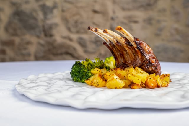 Le costine di maiale bianco nazionale, cotte a bassa temperatura con aromi dell’orto, accompagnate da verdure di stagione e patate arrosto