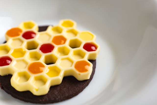 Selezione di grandi formaggi nazionali e locali serviti con miele e gelatine di frutta fatte a mano nella nostra cucina