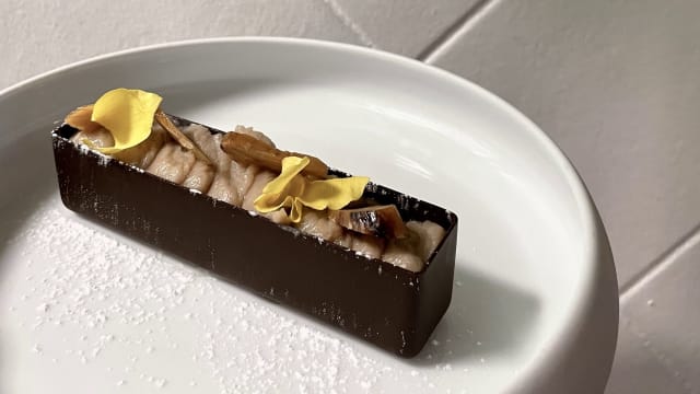 Baccalà mantecato al latte di mandorla con cialda croccante