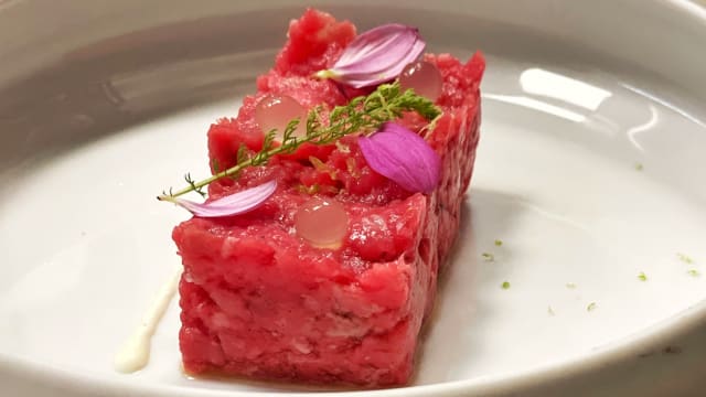 Tartare di fassona con condimento classico -senape, capperi acciughe, tuorlo