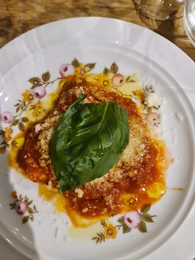 Crespelle al pecorino con pomodoro nostrano e basilico