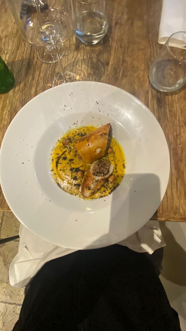 Baccalà mantecato, crema di cicerchie, pomodoro semi dry e cipolle caramellate