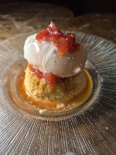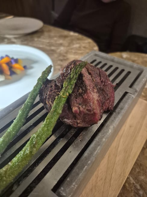 10/10The atmosphere was quiet and comfortable, perfect for a relaxed dinner. The service was excellent — attentive and friendly, with detailed explanations for each dish. The roasted duck breast was incredibly tender and flavorful, and the pairing with pear was just perfect. The flan was smooth and delicate, though a little on the sweet side for my taste. The grilled turbot was also enjoyable, though the skin was slightly overdone and a bit charred. Overall, it was a lovely dining experience and I would definitely come back.