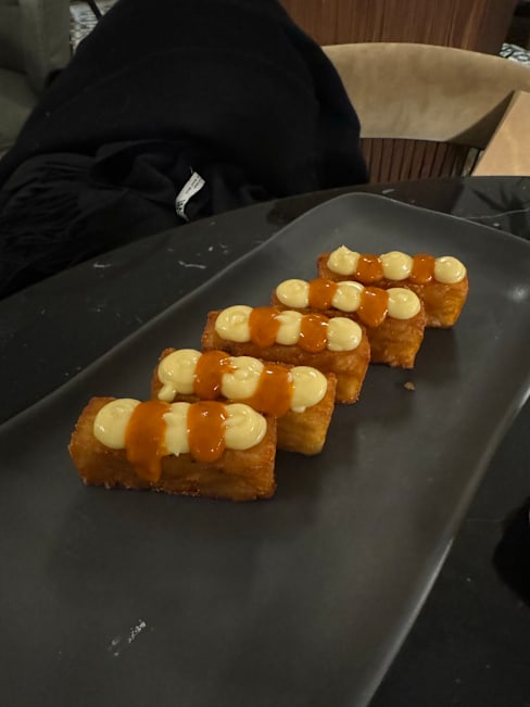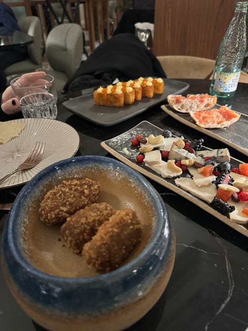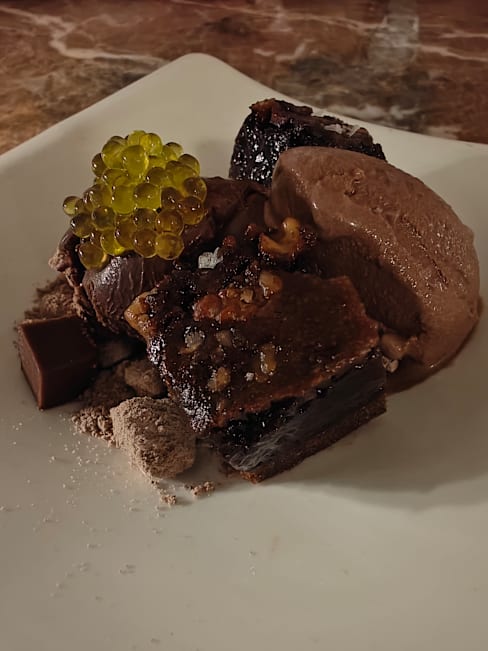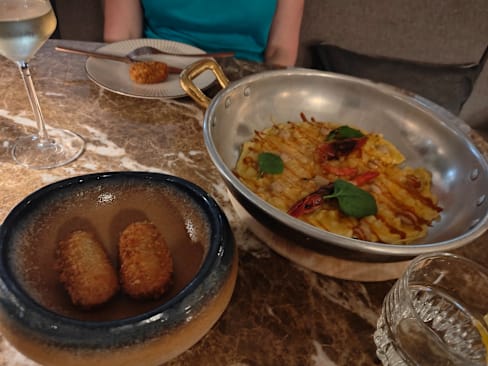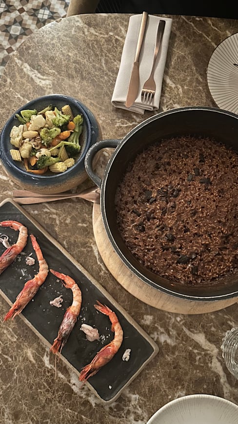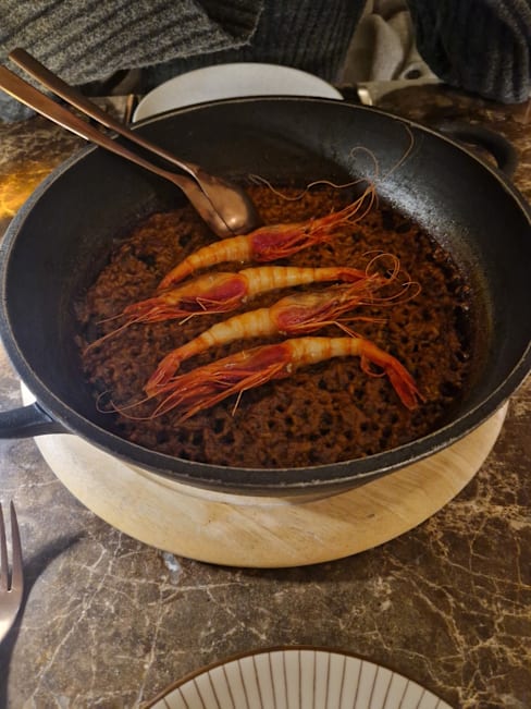 5.5/10It’s not worth the money. We had dinner and ordered three starters. The mushroom croquette was excellent, but the duck and pear croquette had no flavor of either duck or pear. The beef tartare was made like on a cooking show. The chef came, silently mixed the tartare, put it on the table, and left without explaining anything. The tartare was decent, but in our opinion, it lacked spices or balsamic vinegar. For the main course, we decided to try the red rice with shrimp. It was an absolutely terrible experience. The shrimp overwhelmed the rice's flavor, and ketchup ruined everything else. For dessert, we ordered the chocolate dessert with three textures. It turned out to be salty, which is an acquired taste. The cheesecake was dense and not sweet. The espresso wasn’t good. The bill for two was €134. The service was polite and unobtrusive. They took the order without repeating it, and they didn’t clean the crumbs from the table between the main course and dessert.