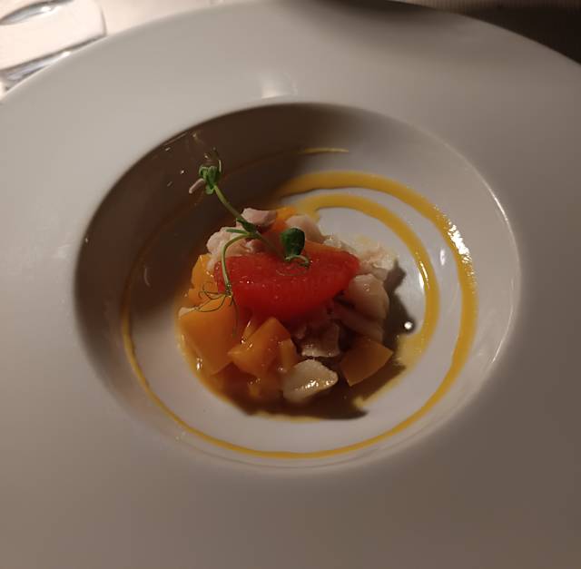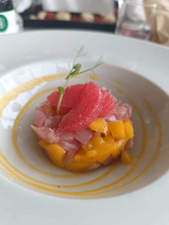 - Tartare di ricciola con mango e pompelmo rosa