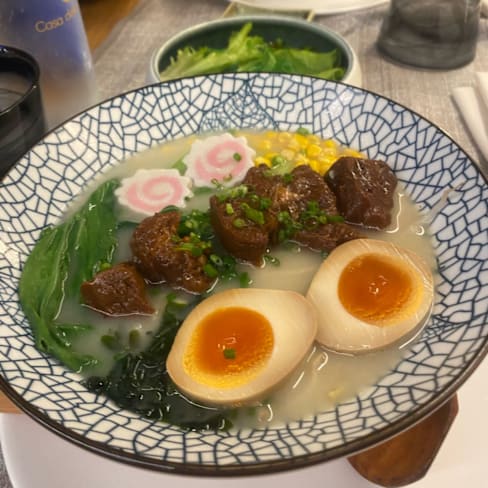 5.5/10Suite disappointed. The dim sum are good but thé ramen are disatrous: egg overcooked (black...), absolutly No Flavour in the soupe... Nice service but it is not enough