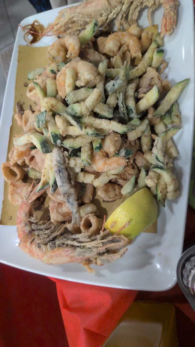 - Capesante gratinate, cozze gratinate, soutè di gamberetti, polpo alla catalana, salmone affumicato, cocktail di gamberetti, crostini