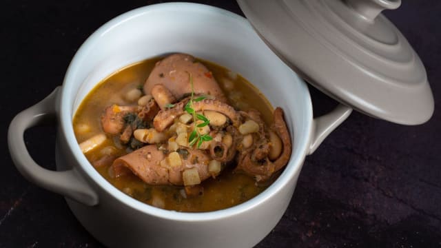 Moscardino locale in zimino, fagioli di conio, spinaciotto fresco e carciofo spinoso