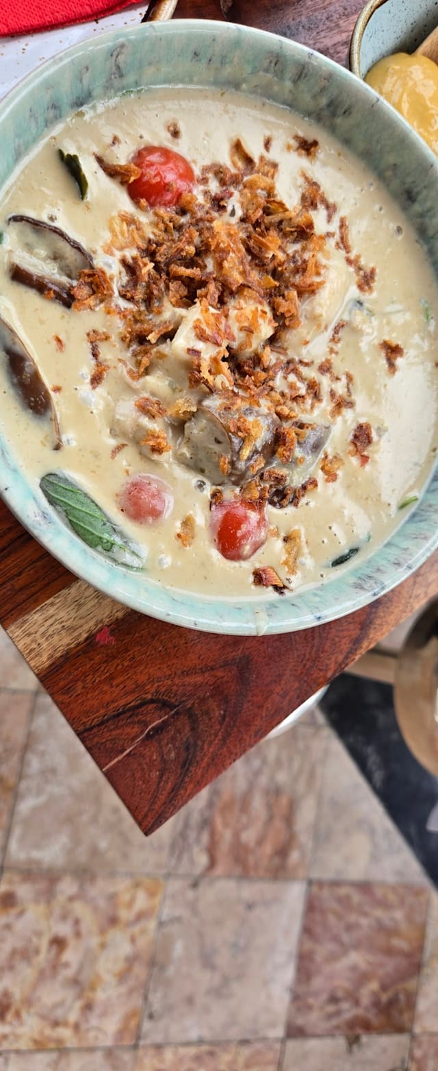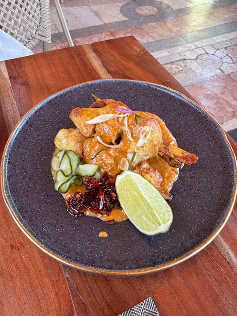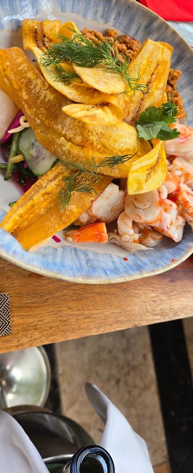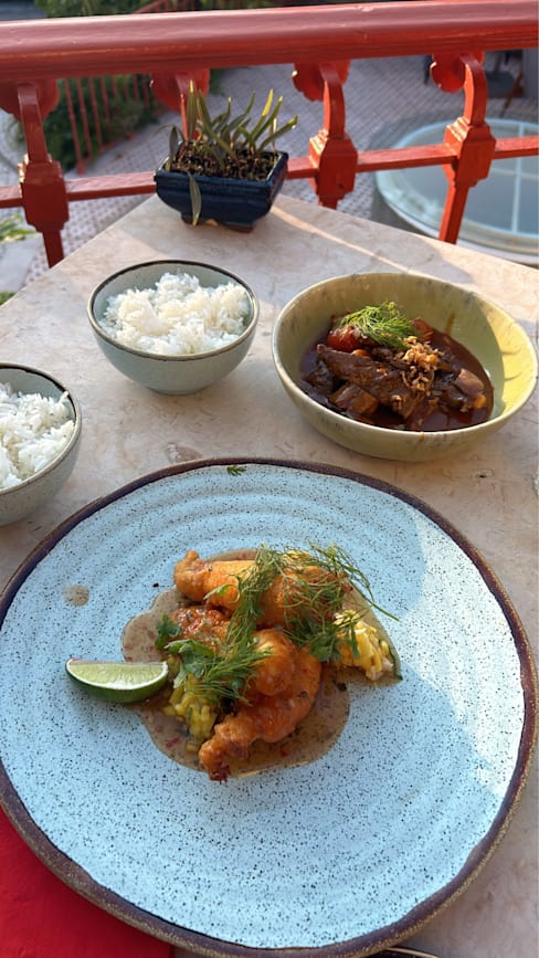 3.5/10The food was so very bad, especially considering that it is not a cheap place. Fried shrimp and spring rolls tasted and felt like supermarket frozen food. And the 35 euros fish curry was so heavy on fat (coconut milk I suppose) that we could only eat half of it and then had digestive issues all afternoon. This is a tourist trap food wise. I can also add that without even telling us, they added 10 euros in gratifications to the bill. We only discovered this because we asked about every item in the bill, otherwise we would have paid the sum without having a chance to decide if we wanted to. The place is beautiful, with a run down feeling but the food is a total failure and an expensive one. My advice is: run from it!