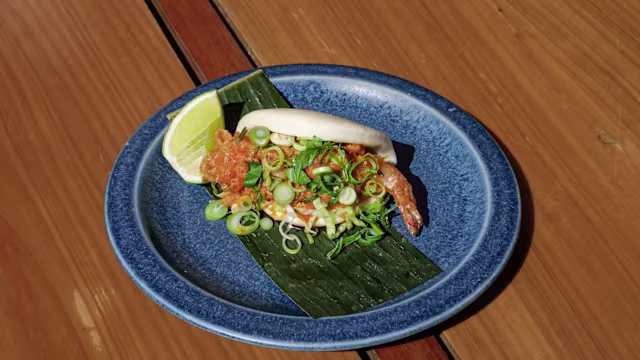 - Fried shrimp bao with pineapplesweet chili sauce and Thai mayo