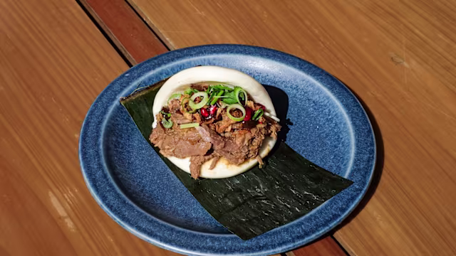 - Roasted duck bao with fried onion,mint tamarind, and pomegranate