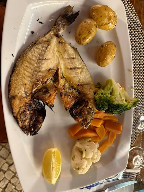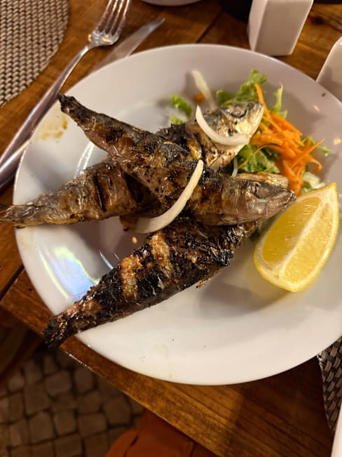 10/10The grilled fresh fish is amazing, the grilled sardines with the heads on are a must have for true fish lovers. The service is also good, most of the servers are lovely and the others may struggle with the English but mean well. Great place and went 3 during my week holiday.