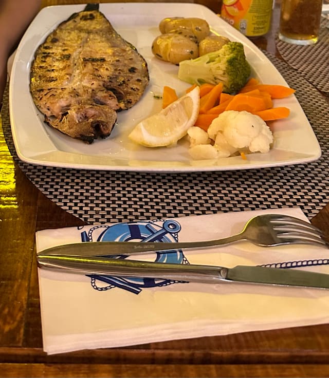 8.5/10They recommended grilled seabass. It was excellent very well grilled You should order the fish they recommend because it is catch of the day The fish soup was acceptable only Located in a quiet zone of the marina The service was very good!