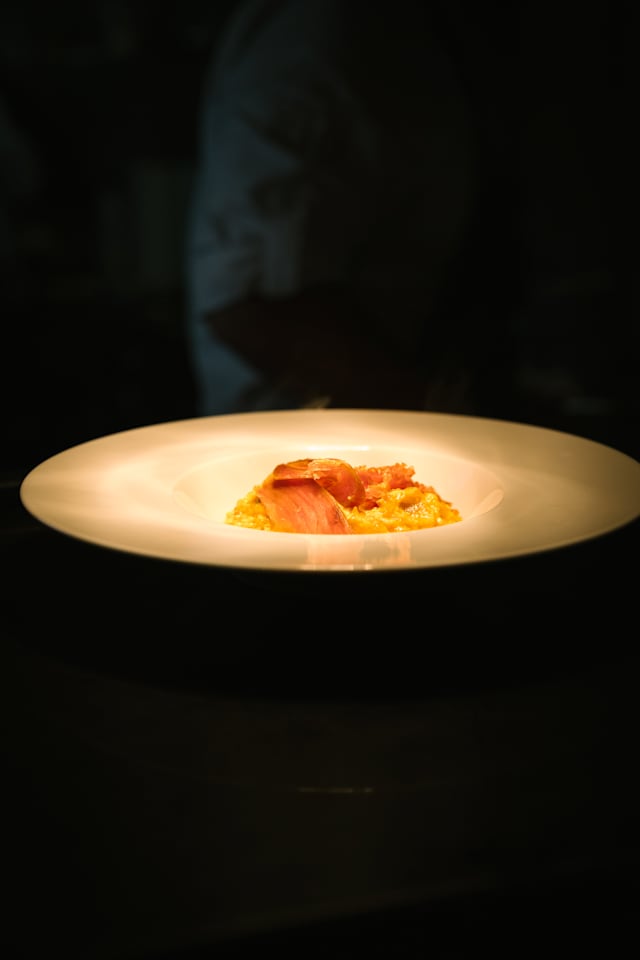 Filete de Robalo, Puré de Aipo, Espargos e molho de manteiga