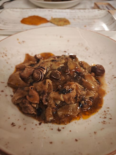 From the moment we entered the level of service was fabulous. They clearly love what they do and their enthusiasm for good food and wine is infectious. We had a taster menu that showed off the best the restaurant. The dishes mix traditional and modern and use local ingredients like mountain asparagus, lamb from the village and mushrooms as well as fresh Valencian sea food. We had a variation on “calçots” using aubergines instead of green onions, red mullet fillets with prawns and a semi picante sauce, an incredible “cordero lechal” , young tender lamb, a cheese plate with something from Spain, Italy, France and England. Every dish a delight! The owner also introduced this confirmed Hispanophile to some new drinks! 9 year matured Manzilla, vino rancio ( wine that had been made to deliberately go “off”. )