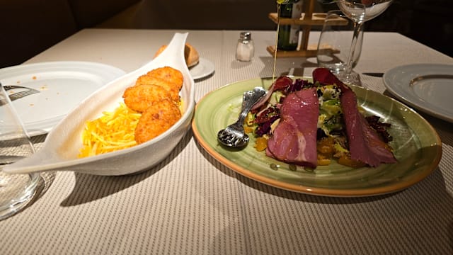 10/10The entrance to the restaurant itself was a bit confusing as there were so many different salons and buildings as venues for weddings and other big celebrations. The restaurant was very cosy and traditional and the food was very good. Only negatives were the seedy bread made with curry, the butter with garlic and the pouring of olive oil, followed by salt and pink ground pepper on the chocolate ingot dessert . They kindly changed mine and gave me a “virgin” ingot which was delicious.