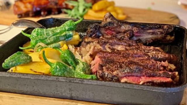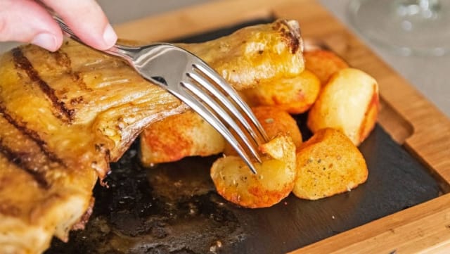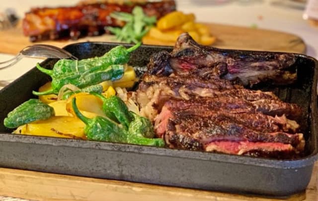 Lomo de vaca premium (400gr) al carbón y patatas panaderas