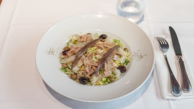 9/10A lovely old-fashioned restaurant with white tablecloths, uniformed staff and a traditional menus with well prepared dishes ranging from.light to heavy. Did not have Spanish vermouth which is odd and not up to the general standards otherwise. Also prices are high but Fork discount offset that.