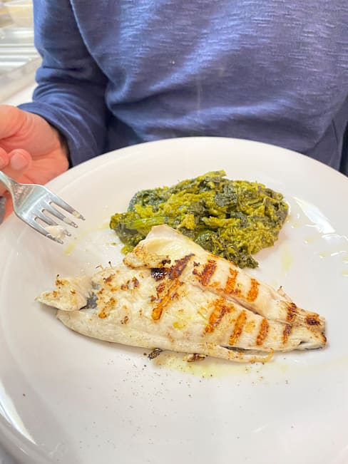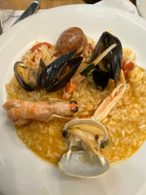 6/10Two of the dishes were great, very decently priced for what they were and tasted pretty good. The baked fish however, at €60, that was microwaved and tasted pretty dry and average for a salt crust and came as a tiny portion with no sides, ruined the meal. We had no idea it would cost that much until the bill came as it wasn’t priced on the menu and we never would have ordered such an overpriced dish if we’d have known. Anything from the menu is good, anything they recommend and don’t tell you the price, don’t get it as it’ll be ridiculously overpriced. The waitress was wonderful and really trying her best, but she was completely rushed off her feet being the only server, we were going to order an after dinner aperitivo but it took 20 minutes for our plates to be cleared and only after we’d got our bill we’re we asked about desert. Couldn’t fault her effort but it’s impossible to provide good service with some many tables to serve as a single server. Overall the fish let the meal down and the experience was extremely average. Would only go back if it was quiet and wouldn’t order any of the specials.