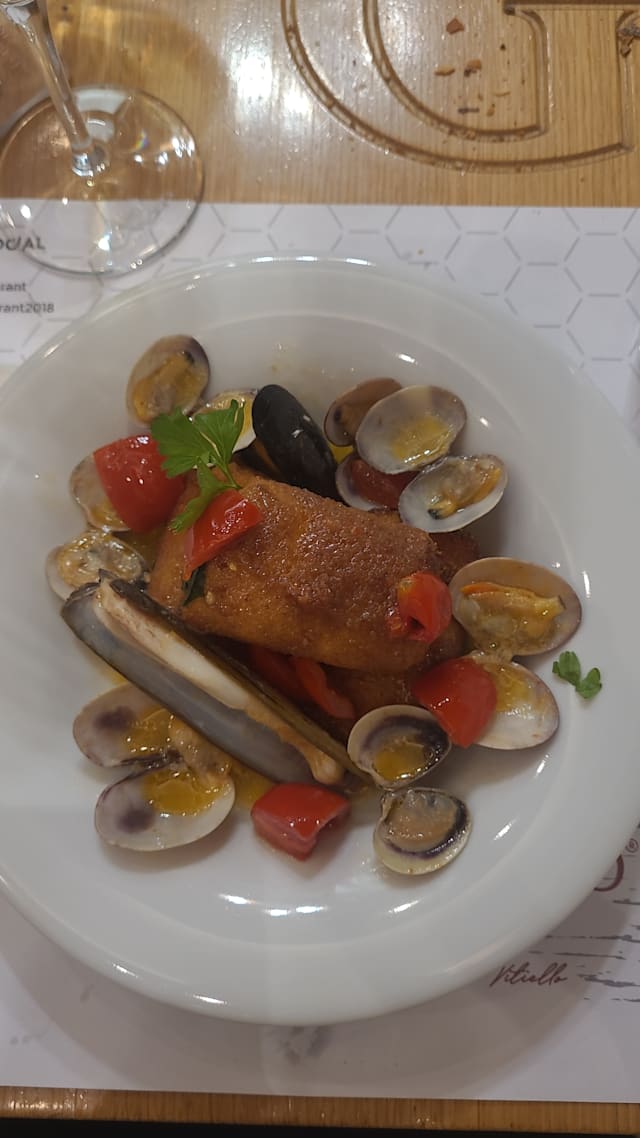 7.5/10Really recommend a visit here - nice atmosphere with inside tables having a view into the preparations in the kitchen. Some real highlights with the food - excellent side dish of courgettes and some juicy fresh tasting seafood. Lovely breads as an accompaniment and an enjoyable bottle of house red.