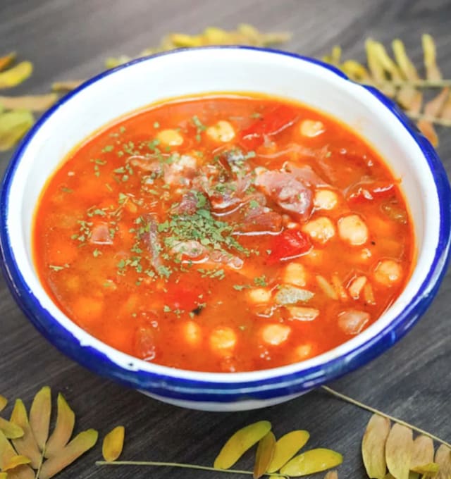 - Délicieuse soupe aux saveurs méditerranéennes, agrémentée de pois chiches et relevée d’une touche de paprika.