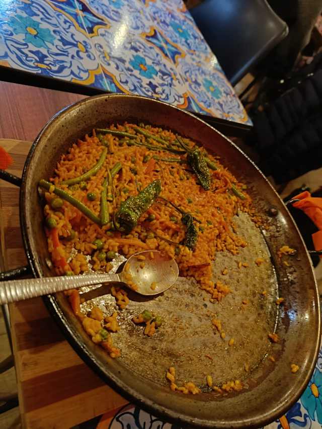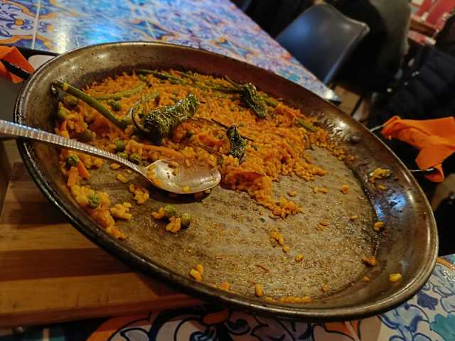 - Riso bomba, salsiccia, pollo, abanico íberico.