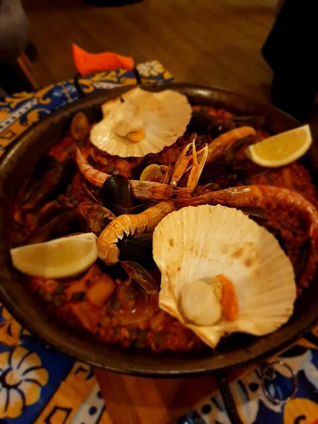 - Riso bomba, calamari, cozze, vongole, gamberi, scampi, tagliatella di seppia, capasanta.