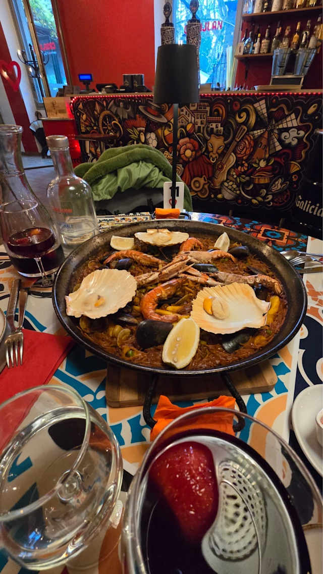 - Pasta corta spagnola, calamari, cozze, vongale scampi, gamberi, tagliatella di seppia, capasunta e salsa aioli