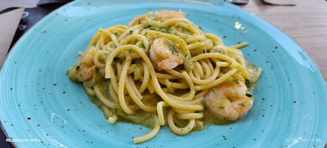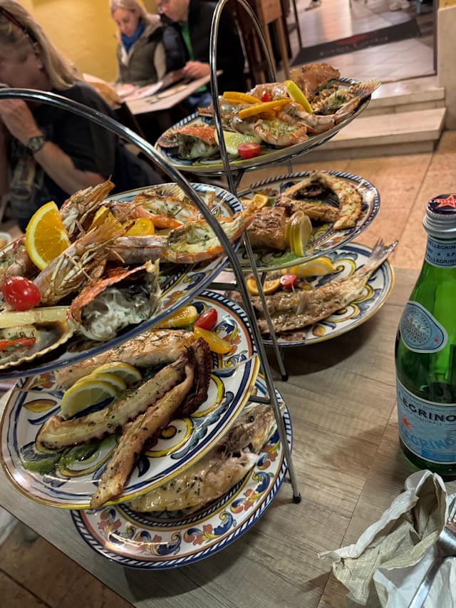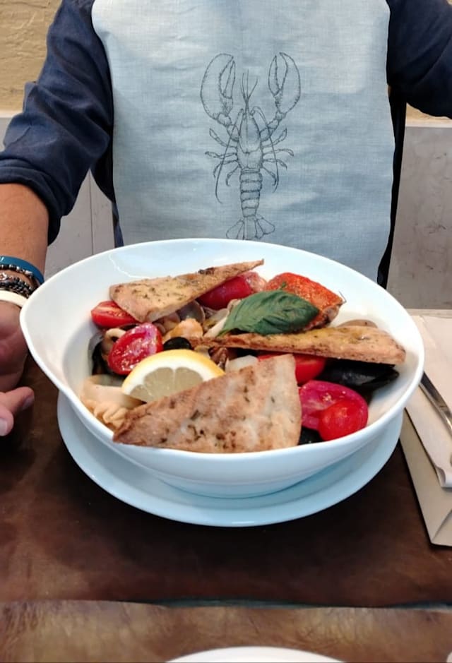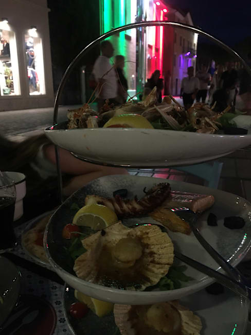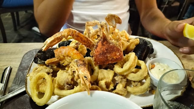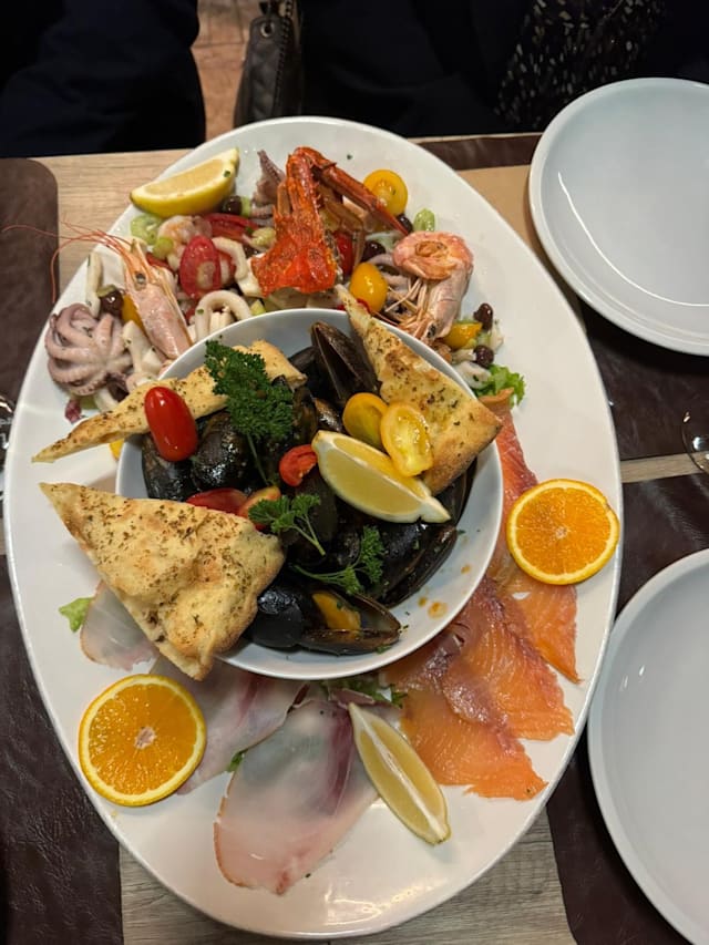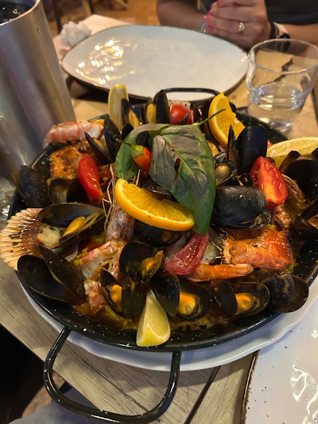 10/10The restaurant was really busy when we arrived and despite our booking there were no tables. Not a problem- the lady in charge simply carried out a table and we had the best spot on the terrace! The food was delicious - we shared antipasti and then two of us shared the seafood platter (for two) whilst pasta and pizza were our daughters choices. Every meal was good - the seafood was outstanding - and the house wine was good quality too. Would definitely recommend a visit and we certainly plan a return before we leave.