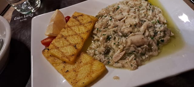 6/10Food was ok but away from very good. Vitello Tonnato was good, fish plate a bit disappointing, Pizza was the best dish. The waiter was a bit slow, but the lady’s bringing the food and drinks were very dedicated. We sat in the aisle aside were the tables a quiet small.