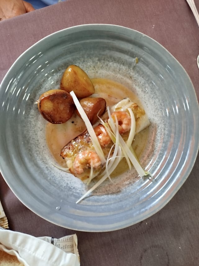 Cocochas de bacalao con almejas y langostinos en salsa verde
