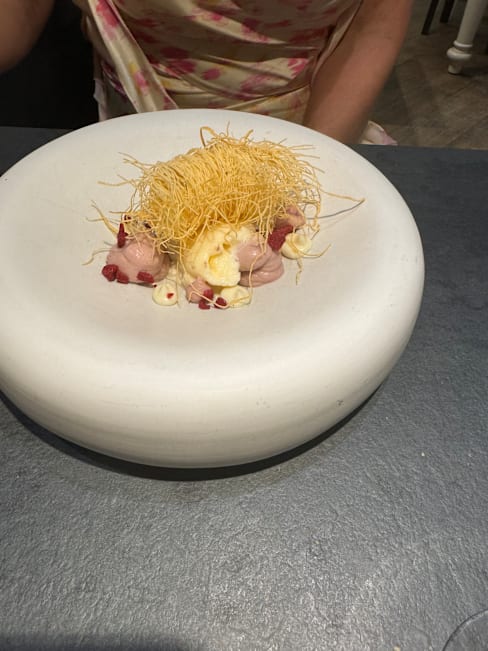 9.5/10We had the 5 course tasting menu which really ended up being 7 courses with 2 ‘extras’ with compliments of the chef. All the courses were delicious but of particular note was the egg with Parmesan foam which was sublime. We really enjoyed our meal and very attentive service. I was a little disappointed with my glass of sparkling wine which tasted very acidic but would definitely recommend this restaurant if you would like a gastronomic treat