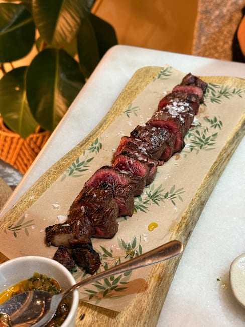 7/10The food started well with delicious bread and oil. The starters were interesting in a good way, pork belly and tuna. The main course was the let down. One of the meatballs was raw and the flank steak very tough. Couldn’t fault the service and we did get money off the bill for main courses and an apology.