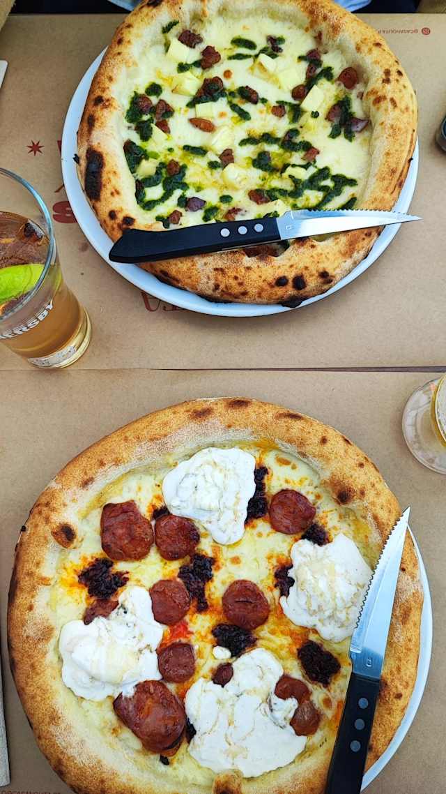 - Mozzarella, chouriço de porco preto, stracciatella e mel picante