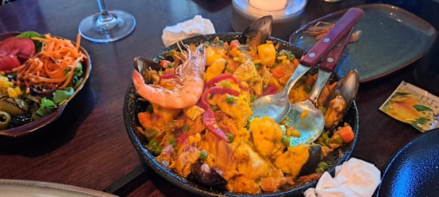 9/10Went on a family dinner on a sunday. Had starters to share, the paella was great, had lots of fish, meat and vegetables in it. Fish (Rape) and meat (Solomillo) were even better if possible. Great wines pairing the food and waited for a bit so we could order desert as well! Which was also a success. We're sure to come back soon.