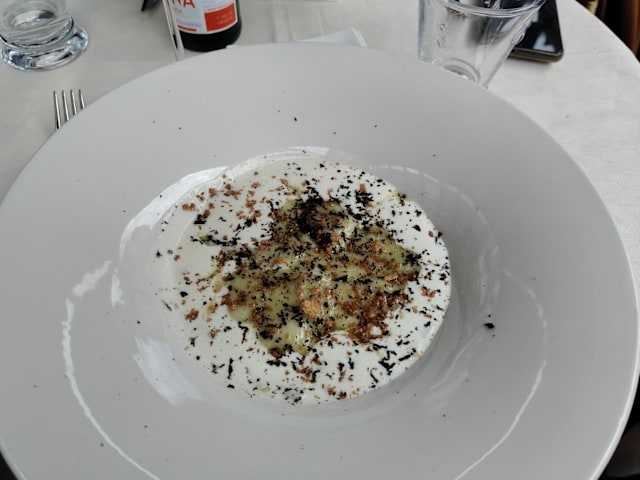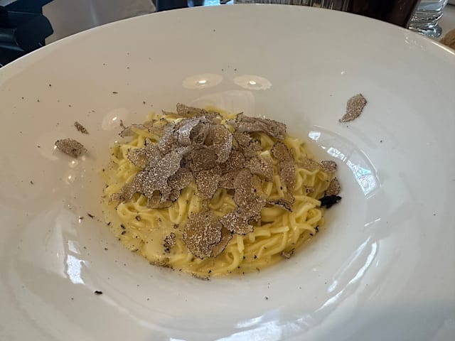 2/10+1Pricing for the truffle tasting menu is not transparent - 10 euro for the fried eggs/pasta does not include any truffle even though the menu states that "extra" truffle (emphasis on extra, which implies that a base amount of truffle is given) is at market price. We were not informed of this when we ordered, nor were we asked how much truffle or whether we wanted white or black truffle. The main dishes we had - the Milanese risotto and fish dish - were poorly done. The risotto was too salty and lacked any other flavour, while the fish was not fresh with, again, no flavour. For the price we paid, the meal was disappointing and we certainly do not recommend visitors to Milan to try this place.