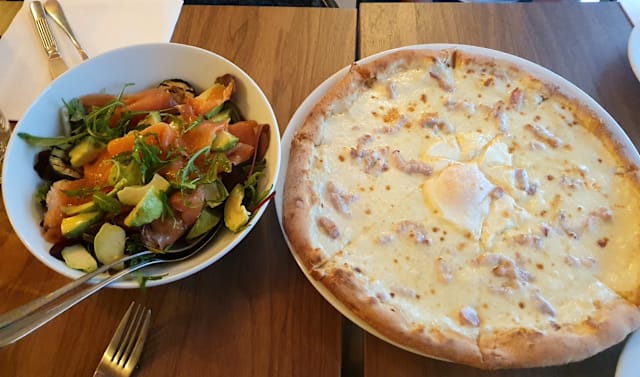 7/10Good Italian restaurant that needs some improvements in their first dishes. Pizza was excellent, well prepared and cooked, rich in diverse ingredients of an outstanding quality. Pasta was good, but it needed some more cheese to intensify the poor flavor of the sauce. In terms of dessert, the panacotta was good. The negative point was the salad, the quantity of cheese was too small for the size of the salad and they used canned artichokes with a very bad "plastic" texture. Probably it can be substituted or removed. At the entrance, this restaurant exposes several ingredients to the clients and the atmosphere is nice.