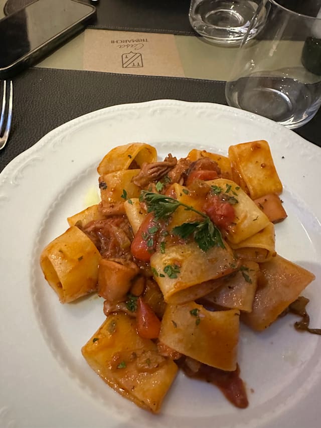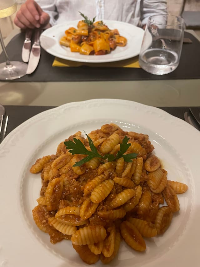8.5/10It was a restaurant that many friends have recommended, but overall it lacked the extra 10% of a truly delicious meal. Italian cuisine is very much about the quality of the products themselves and as I ordered (maybe wrongly) a tagliata di manzo I was disappointed when derved a very tough and chewy piece of meat. My partners pistachio pasta was a bit bland as well. Overall a good restaurant but far from the best experience on the island of Ortigia.